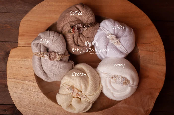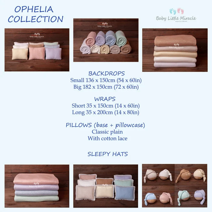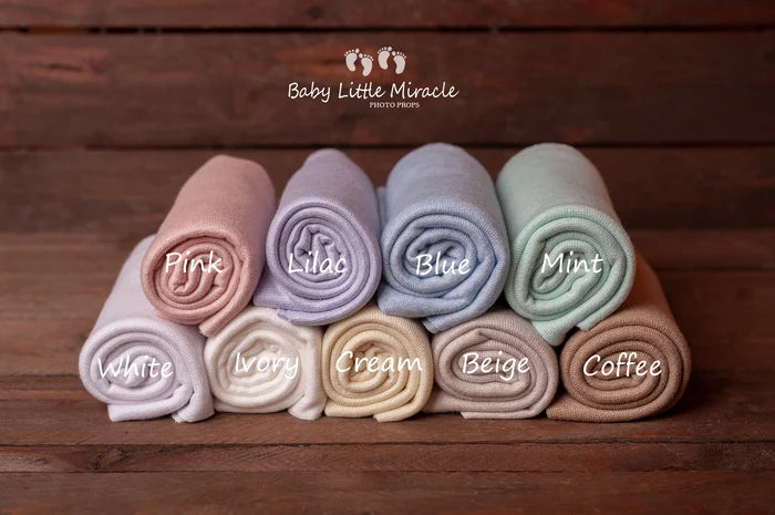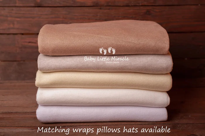 美しいオフェリアコレクションのバックドロップはニット製でニューボーンフォトにナチュラルな質感を添えてくれます。伸縮性があり快適な肌触りで、ベースの敷物は不要です。