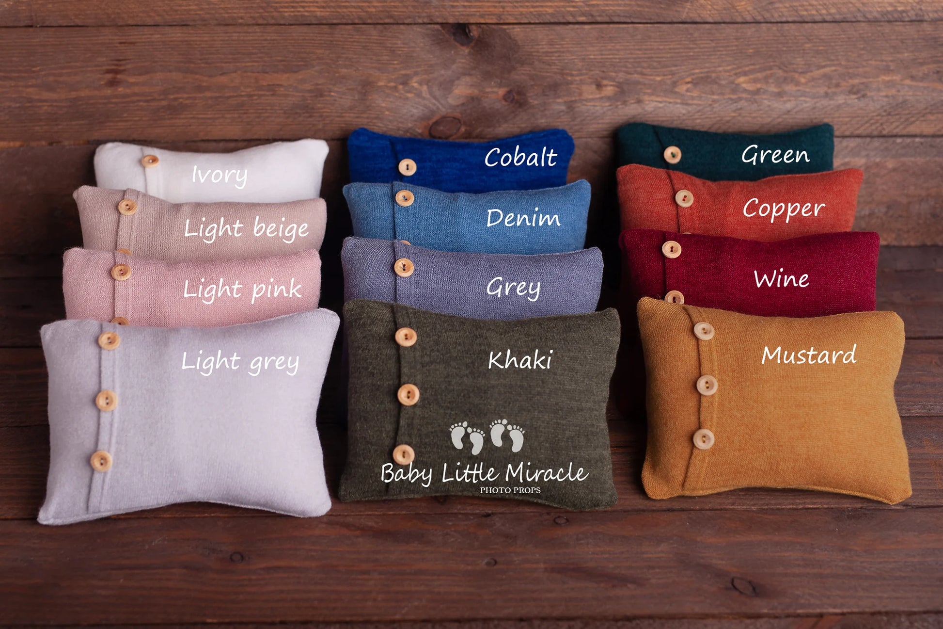 木製ボタンのついた可愛らしいまくらです。性別関係なくご使用いただけます。全まくらはベースとまくらカバーで構成されています。