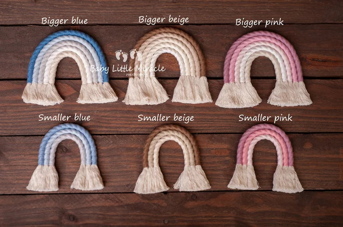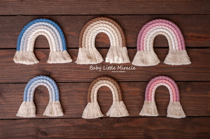 ベビー誕生のお祝いに小さな虹はぴったりなアイテムです。手編みの小さな虹はとても愛らしく写真に優しいあたたかな印象を添えてくれます。