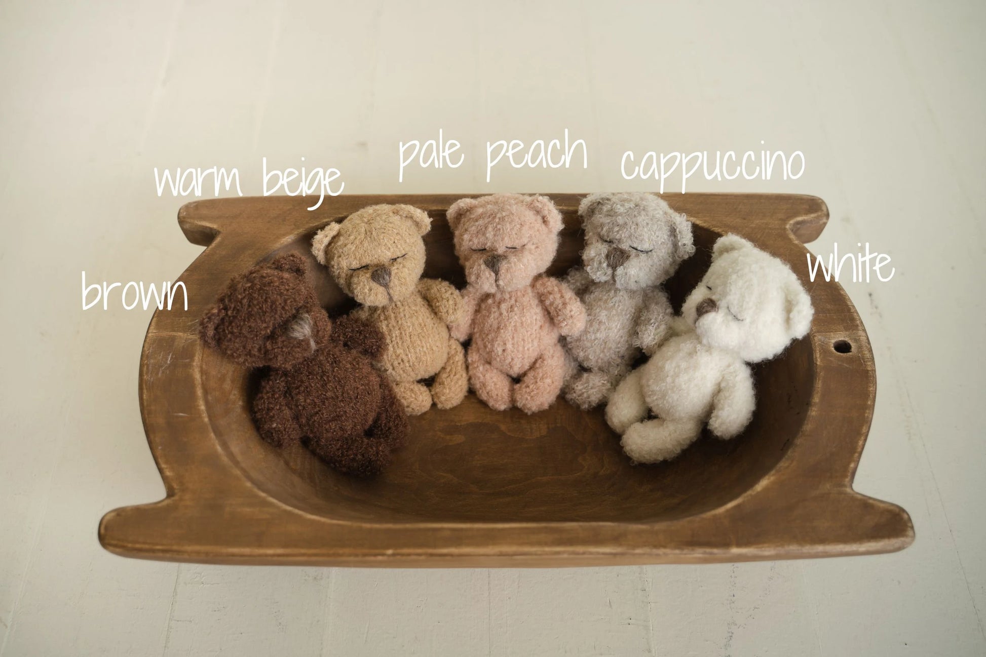 愛らしい小さなテディベアはニューボーンフォト用プロップス、ギフトとしてぴったりです。1つ1つ愛情を込めて手編みで作られています。
