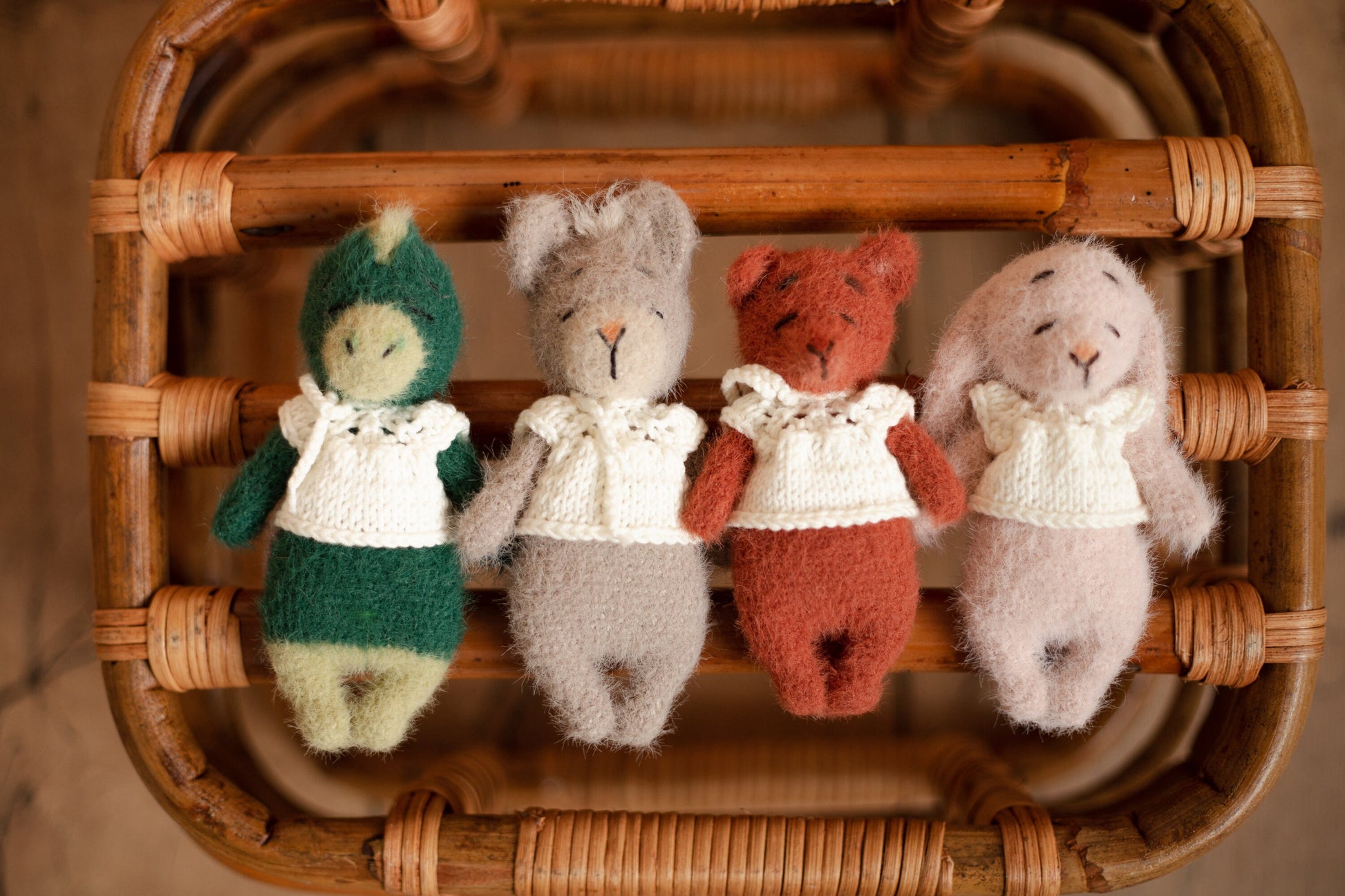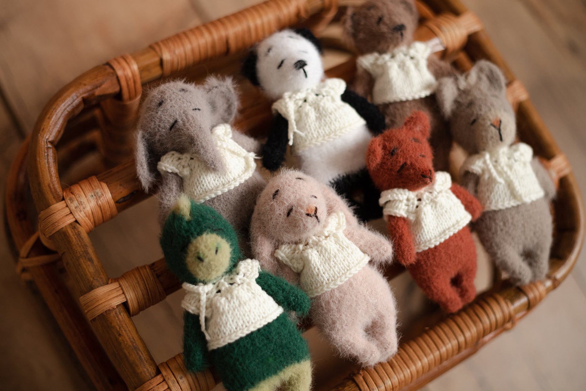 愛らしい小さなどうぶつたちはニューボーンフォト用プロップスとして、または赤ちゃん用ぬいぐるみ、ベビーシャワーギフトとしてご使用いただけます。