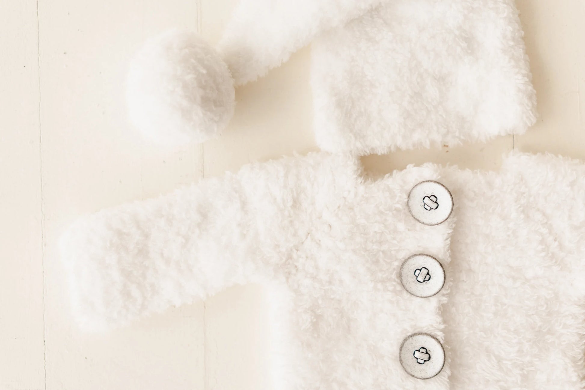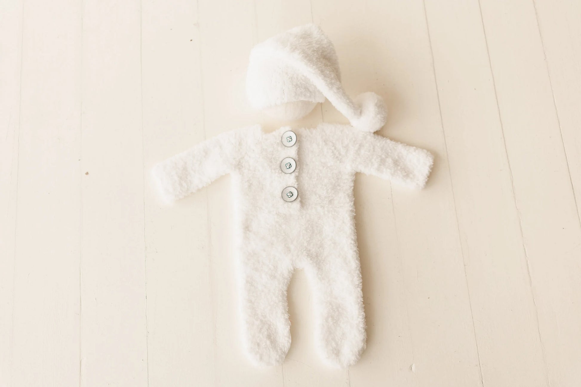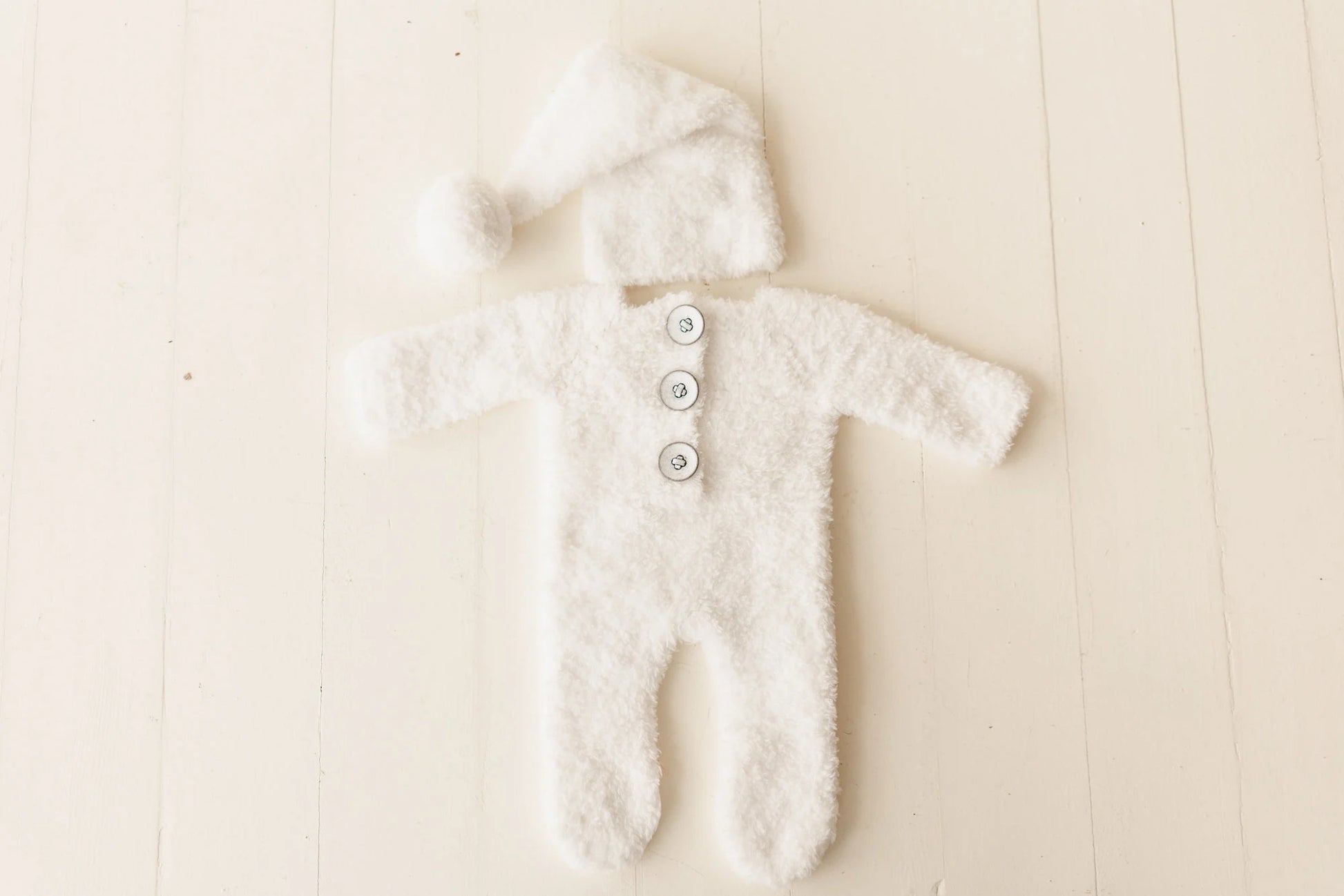 ニューボーン向けにつくられた雪だるまの衣装です。ふわふわの温かい風合いで、クリスマスフォトセッションはもちろんご自宅で家族と初めてのクリスマスを過ごすベビーにもぴったりです。柔らかなニットで手編みされ、細部にまで愛らしさを織り込んだこの雪だるま衣装には、さらに小さくかわいらしい雪だるまのぬいぐるみが付いています。