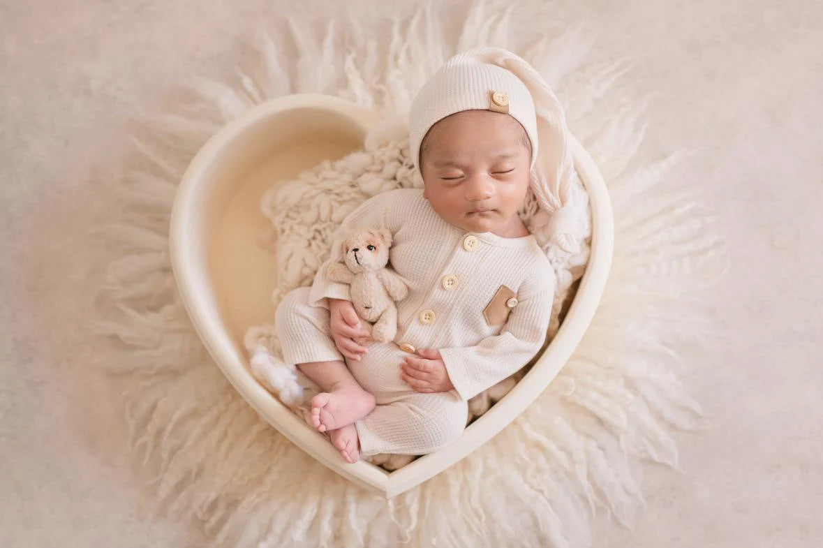 愛らしい小さなテディベアはニューボーンフォト用プロップスとして最適です。